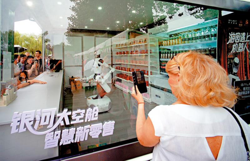 照片:北京塔格宫殿的一家机器人零售店外,外国游客正在观看机器人服务。 \ 中新网当天国庆、中秋假期,随着免签、退税、支付便利等政策措施不断优化,大量外国游客来华旅游,“来华旅游”在这个假期持续火爆。国庆假期前夕,中国对持有俄罗斯普通护照的人员实行一年免签政策。正是在这一政策的推动下,黑河这座中俄边境城市迎来了新一轮的入境消费热潮。据黑河出入境边防检查站统计,节前6天,黑河口岸卡布昂入境旅客量同比增长38.46%。作为国际消费中心城市,重庆推出全新升级的英语版本为海外游客绘制的文化旅游地图,涵盖了景点所在地、美食店、酒店住宿等。中国丰富的产品供给为外国游客来华“买买买”提供了新的选择。在上海,一对来自英国的夫妇除了购买传统的杏仁糖外,还打算选择中国的玩具、童装等回家。外国人的购物清单逐渐从传统的纪念品、茶叶扩展到时尚玩具、手机、无人机等国特产品。为了更多提高入境消费的舒适度,多地已在节前优化退税服务,退税政策的实施范围也在更多地区扩大,让境外游客“买得舒心,回得安心”。 \ 央视网