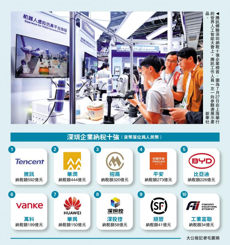 照片:Tencent第二次被评为深圳前十名的纳税人中的第一名。图片显示,腾讯(左)工作人员(左)在7月27日在上海举行的世界人工智能会议上向客人展示了产品。该清单不仅反映了深圳经济的总产出的持续增长,而且还宣布了工业工业高端制造业的升级:前者继续促进了Shenzhen的经济发展,同时又是ACCEL的全球经济发展。借助税收数据背后的工业地图,很明显,深圳正在用全球竞争者建立现代工业系统。当腾讯的金融技术,BYD的全球高端制造业和华为的科学研究是一种协同作用时,预计深圳将在全球行业竞争中占据更加有利的地位,并为中国风格的现代化做出更多的“深圳解决方案”。任何PAO记者Mao Lijuan于2024年以近600亿元人民币的税款领导该市,这是深圳经济数字生态学的积极发展。作为中国互联网行业的诞生之一,深圳已经在腾讯领导的数字行业中形成了一个完整的链,涵盖了云计算,大数据,人工智能,区块链和其他领域。 2023年,深圳主要的数字经济行业的附加值超过了1.2 Trilyon Yuan,其成本超过GDP,超过了全国平均水平。低税款和高投资,并显示出对科学和技术业务的战略容忍度。对腾讯税收的贡献不仅反映在量表的效果上,还反映了生态辐射能力。通过微信工资和企业微信等平台,腾讯建立了一个数字生态系统,该数字生态系统连接了12亿以上的用户,推动了成千上万的协调开发溪流和中小型企业。向其金融技术部门缴税的费用为35%,反映了深圳比数字货币和跨境支付等削减领域的首要优势。同时,尽管华为排名第七,即支付150亿元人民币,研发投资占25%,而5G专利号则是世界上最大的。这种“低付费税和高投资”模型证实了深圳为困难技术公司的战略成立。作为一家综合金融巨头,一个集团以273亿元人民币的税款排名第四。 “金融 +技术”双轮驱动方法深度包括传统业务,例如保险,银行业和通过人工智能和区块链等技术的投资,以创建一个智能财务平台,并使用年度交易的规模处理超过1万亿英里。比德以税收228亿元人民币,其爆炸式增长以深圳制造业为高端制造行业的巴辛转型而成功。作为该车辆的全球新销售,BYD在深圳设立了全球研发中心和八个主要生产基地,该基地产生了完整的工业覆盖电池,电机,电子控制和车辆制造。 2024年,深圳的新能源产量达到了29.33亿,价值23%,占全国23%,并连续两年赢得了第一个乡村车的冠军。该行业敦促在2023年的溪流和流量超过800亿元人民币的潮鼓的总税收支付。智能生态系统正在增长,传统巨头正在改变机遇。该集群的影响与该行业有关。作为MU电子生产Servicendo的最大提供商,Fucci已在深圳建立了一个“信标工厂”集群,该集群将MOR连接起来E通过工业互联网平台的2,000多个供应商,实现了30%的生产效率,能源消耗降低了15%。 34亿元人民币税的背后是深圳制造业智能生态系统的时期 - 从芯片设计到精确,从5G应用到工业软件,深圳已经建立了一群电子产业,其年产价值超过2万亿元。中国资源,中国商人和范克等传统巨头行业通过数字变化恢复了新的机会。中国资源集团已任命深圳的12个智能能源项目,每年减少二氧化碳泄漏量超过200万吨;中国商人集团位于Qianhai自由贸易区,以生产世界领先的技术平台,并提高了60%的定制清除效率; Vanke集团将BIM技术应用于城市建设,并促进了工业工业化建筑业的n。这些变化不仅提高了公司效率,还提高了新的税收增长点。深圳正在以基准为基准,以加速建造“数字经济 +高端制造业 +现代服务”的现代工业系统,并持续破坏主要技术的“瓶颈”问题。
