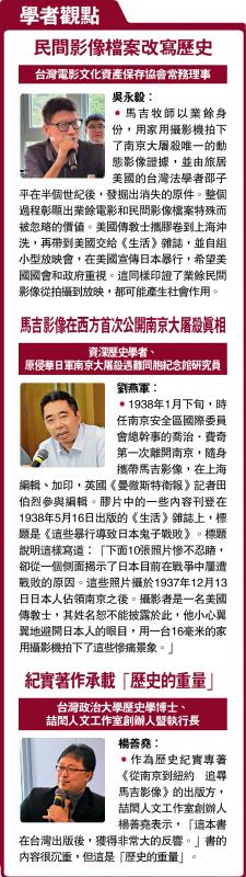 图像档案的历史是重写历史记录。台湾电影文化资产保护协会执行董事吴Yongyi:•Ma Ji牧师使用家用摄像头捕获了他的业余地位中南京大屠杀形象的唯一动态证据,而失踪的原始原件在半个世纪后并没有在台湾法律学者的半个世纪后生活在美国法律上的Shao Zip Scholar的学者。整个过程显示了业余电影和民间视频档案的特殊和被忽视的价值。美国传教士将这部电影带到上海冲洗,然后将其带到美国,将其送给《生活》杂志,并安排了一场小型放映,以促进美国的日本热情,希望美国国会和政府能够关注它。它还证实,业余民间形象可以从拍摄到筛查。 Maji图像在西方首次揭示了南京大屠杀的现实。高级历史伊恩(Ian)和前研究员在日本侵略者liu yanjun的南京大屠杀受害者的纪念馆里:•1938年1月下旬,南京安全区国际委员会局长乔治(George)。 Feich首次离开Nanjing,并随身携带Maji的图像,在上海编辑和印刷。英国曼彻斯特监护人的记者天·博利(Tian Bolie)参加了编辑。这部电影中的一些内容于1938年5月16日在杂志《生活》中发表,题为“这些残忍导致了日本魔鬼的击败”。请阅读标题说明:“以下10张照片很糟糕,但他们一方宣布穆拉是日本目前在战争中被击败的原因。这些照片是在1937年12月13日日本人被占领的Nanjing之后拍摄的。摄影师是美国传教士,他的名字无法披露,他的名字却无法披露。他仔细地避开了日本人的眼睛,并捕捉了这些记录的摄影机。Ary Works带来了“历史的重量” Yang Shanyao博士。从历史上看,台湾政治科学大学,中国人文工作室的创始人兼首席执行官:•作为历史纪录专着的出版商“ York追求Maji的形象”的出版商,中国人文工作室的创始人Yang Shanyao说: