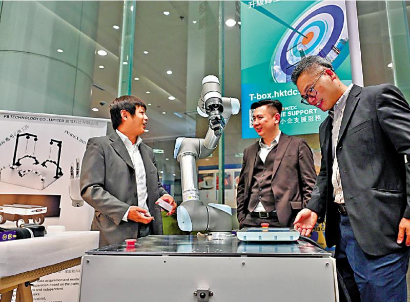 图:“十五五”期间,香港要积极融入国家发展大局,加快拓展人工智能等领域。图示参展商在香港国际创新科技展展示协作机器人。 \ 中新社